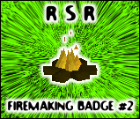 De Firemaking #2 Badge* Req: Firemaking level 70, maak een screenshot waarin je de letters FIRE hebt gemaakt in vuur. Klik hier om een voorbeeld te bekijken. Het is verplicht om deze badge met 2 personen te halen, je mag het ook met iemand buiten rsr doen, elk van jullie dient RSR te zeggen in het screenshot en jullie zullen dan beiden de badge krijgen. |