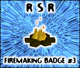 De Firemaking #3 Badge* Req: Firemaking level 80, maak een screenshot waarin je de letters RSR hebt gemaakt in gekleurd vuur, met firelighters. Klik hier om een voorbeeld te bekijken. Het is verplicht om deze badge met 2 personen te halen, je mag het ook met iemand buiten rsr doen, elk van jullie dient RSR te zeggen in het screenshot en jullie zullen dan beiden de badge krijgen. |